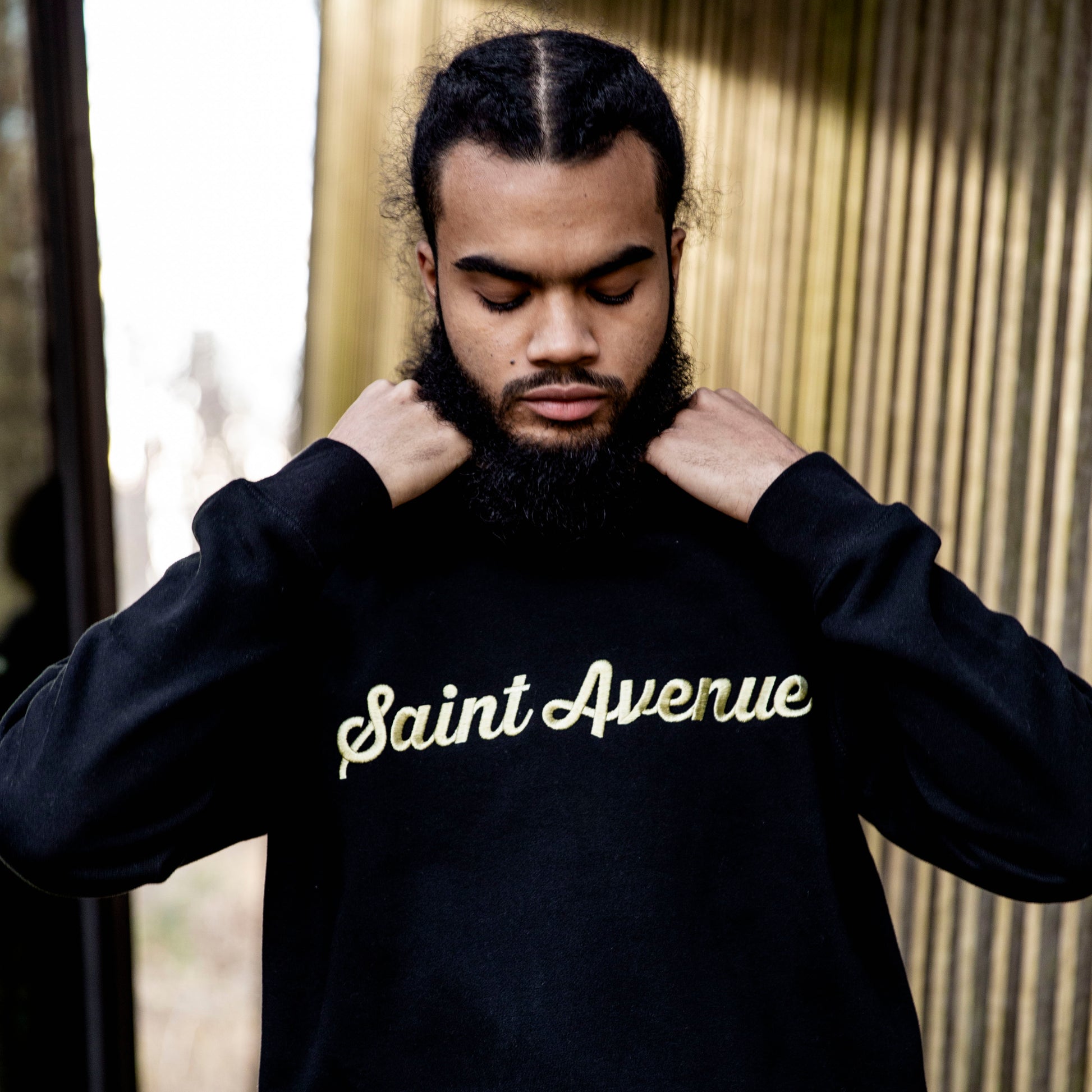 - Pullover crew, inset sleeves