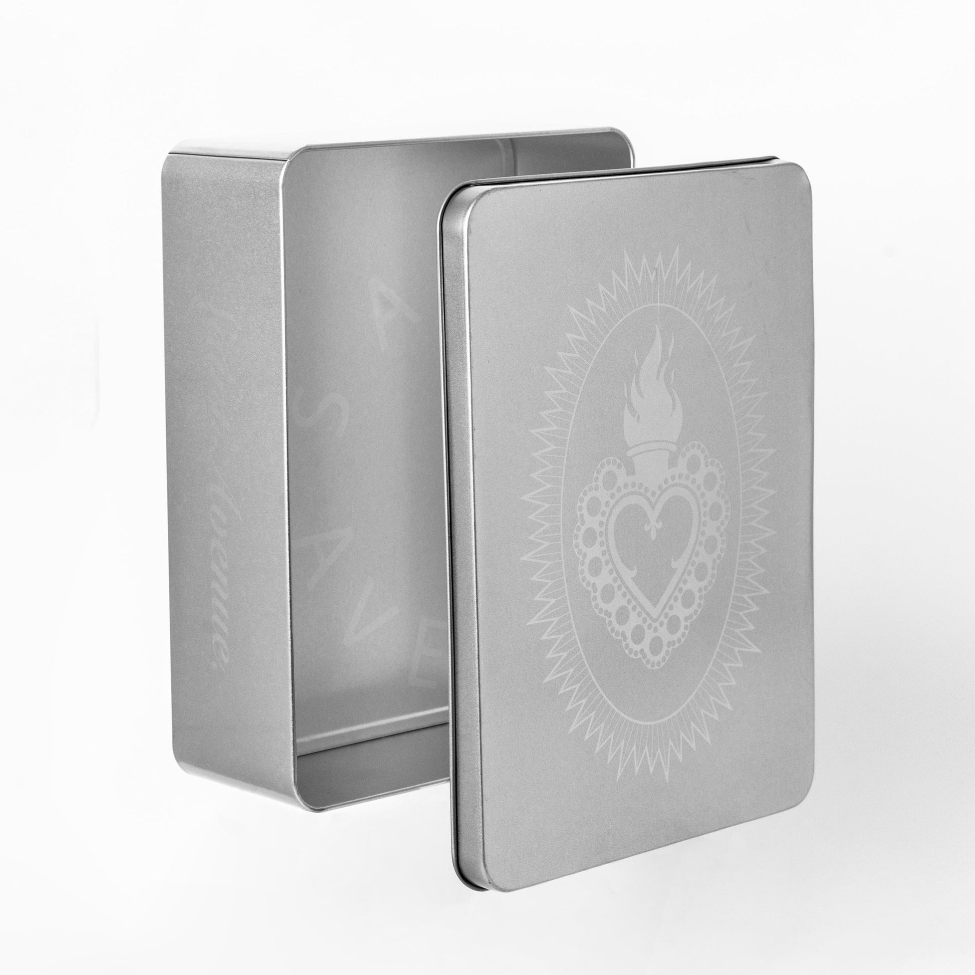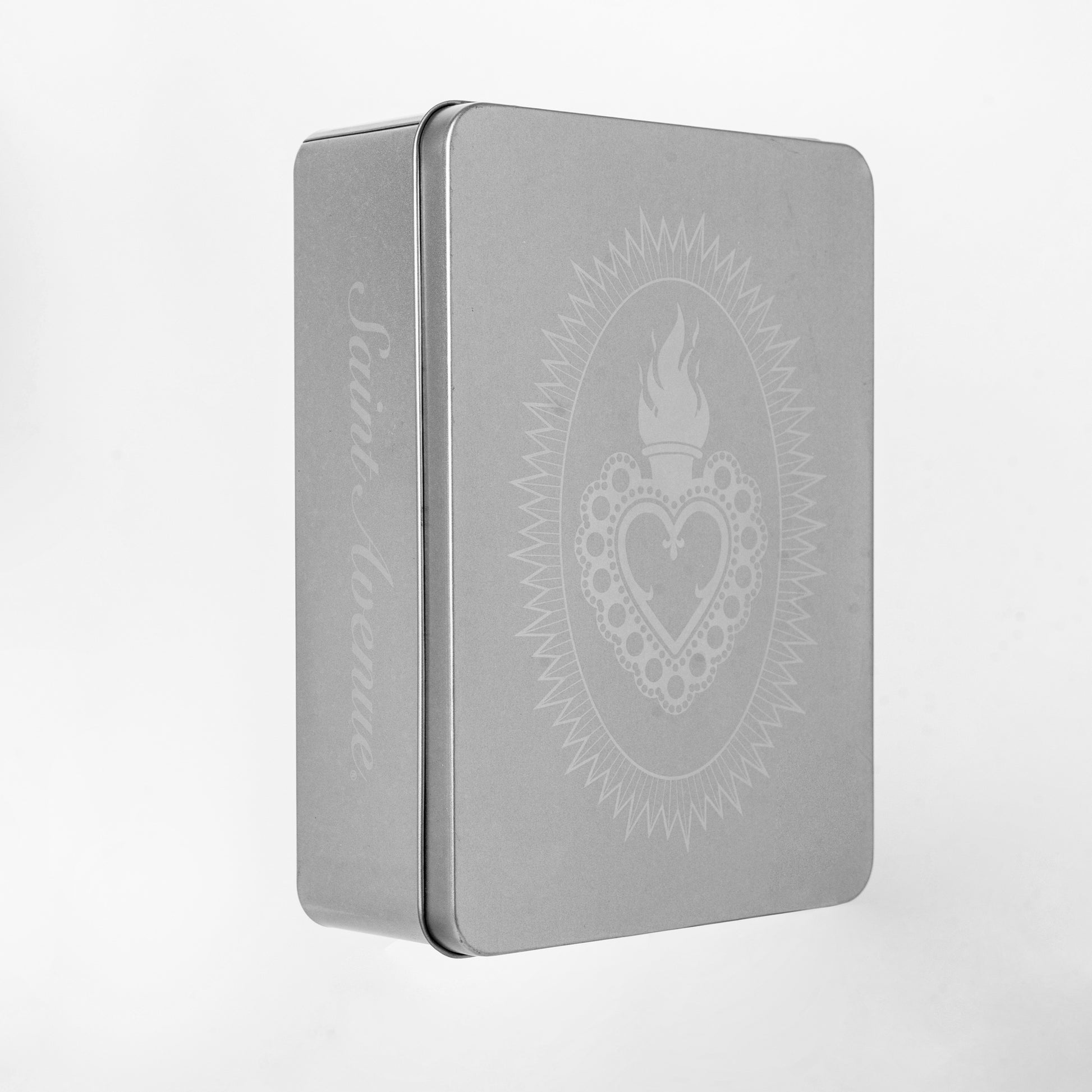 Each silver puzzle box comes laser engraved with puzzle design on top of lid, collector’s number underneath lid and @saintavenue script on both sides.